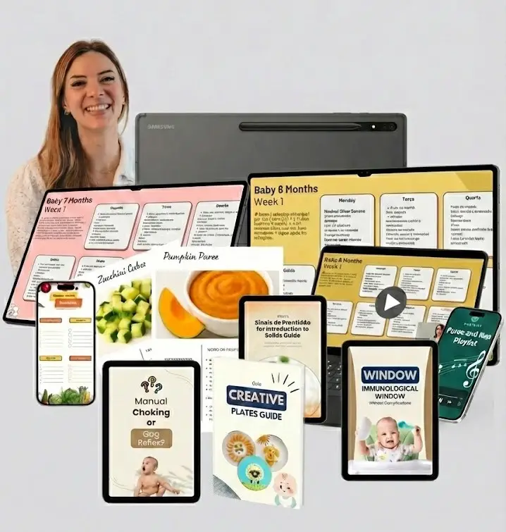 THE COMPLETE GUIDE TO FEEDING YOUR BABY SAFELY was created to transform this burden into something light. A visual system and monthly menu to give you the safety you deserve.